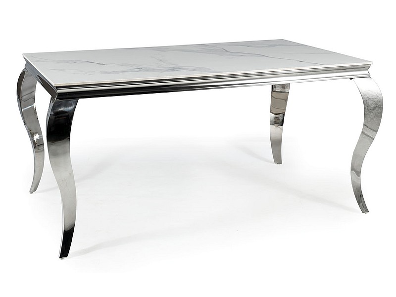 blat: ceramika, CALACATTA, stelaż: stal nierdzewna, kolory: biały połysk / chrom