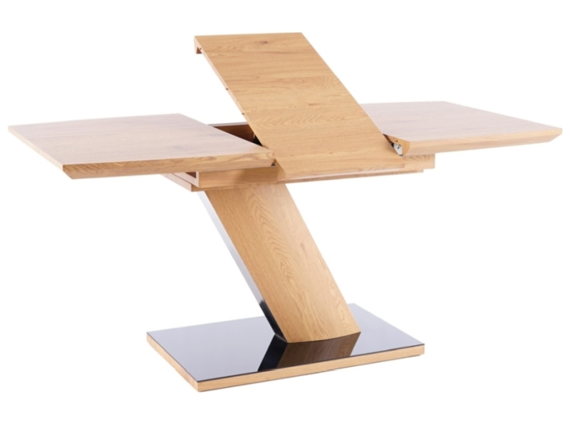blat: MDF+okleina, stela.: MDF+okleina+szkło hartowane, kolor: dąb / dąb+czarny lakier