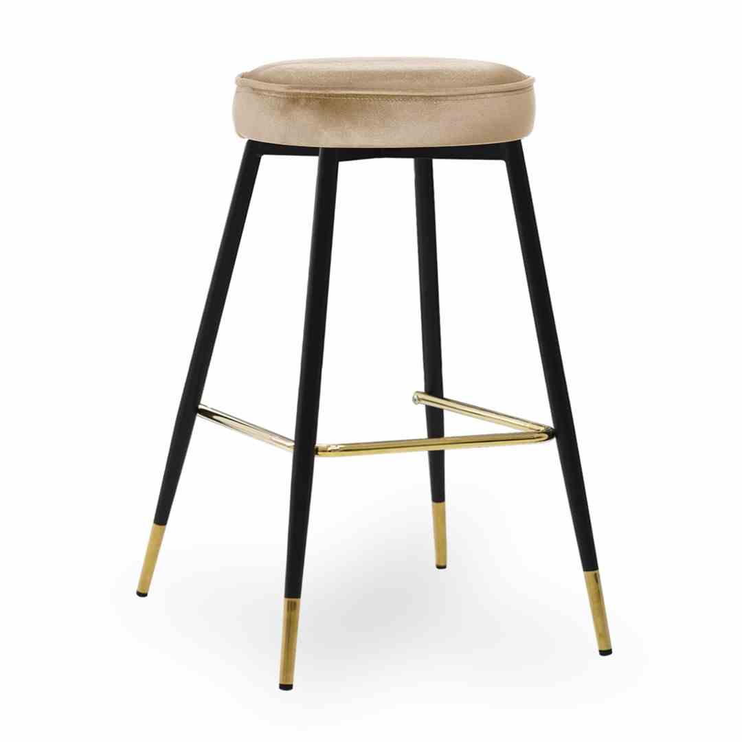 Stołek barowy Circko posiada okrągłe siedzisko obszyte dookoła ozdobną kedrą.