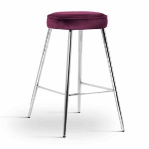 Stołek barowy Circko posiada okrągłe siedzisko obszyte dookoła ozdobną kedrą.