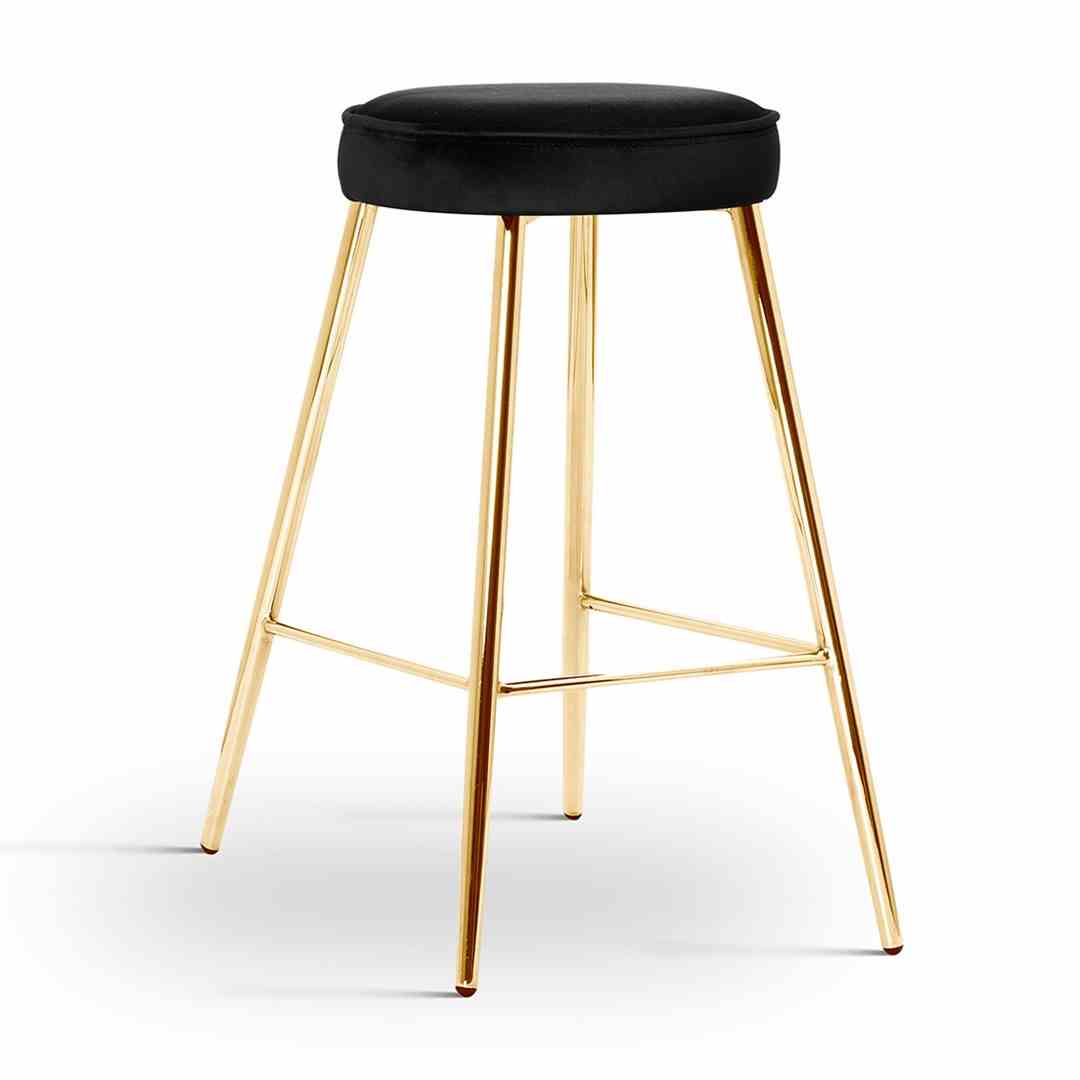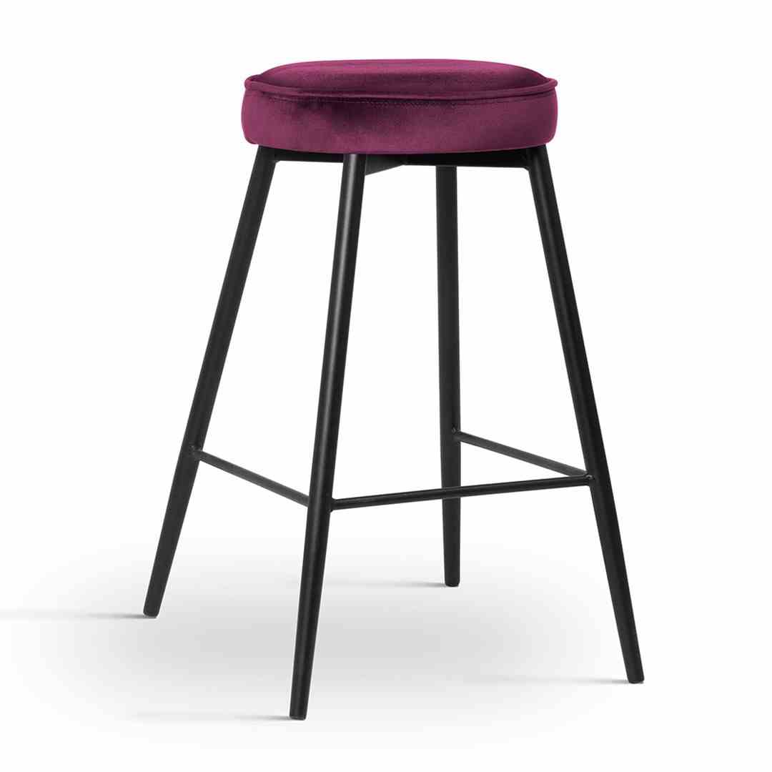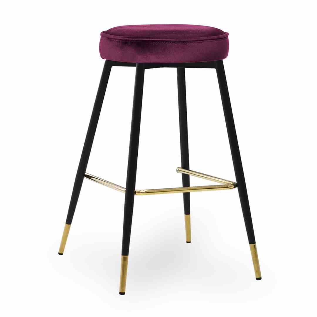 Stołek barowy Circko posiada okrągłe siedzisko obszyte dookoła ozdobną kedrą.