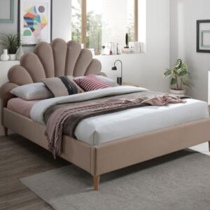 ŁÓŻKO ASPEN VELVET 160x200 KOLOR BEŻOWY/DĄB TAPICERKA BLUVEL 28