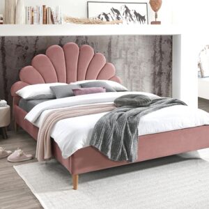 ŁÓŻKO SANTANA VELVET 160x200 KOLOR ANT. RÓŻ/DĄB TAPICERKA BLUVEL 52
