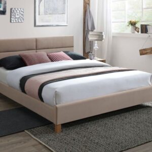 ŁÓŻKO SIERRA VELVET 160x200 KOLOR BEŻ/DĄB TAPICERKA BLUVEL 28
